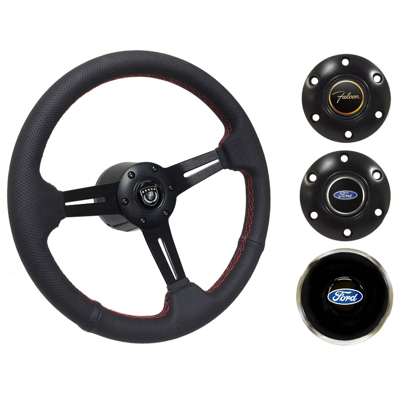 1970 Ford Falcon Steering Wheel Kit | Perforated Black Leather | ST3586RED