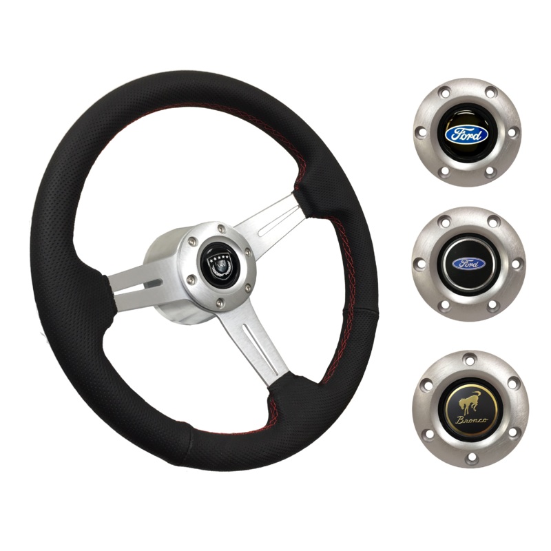 1978-91 Ford Bronco Steering Wheel Kit | Perforated Leather | ST3587BLK-RED