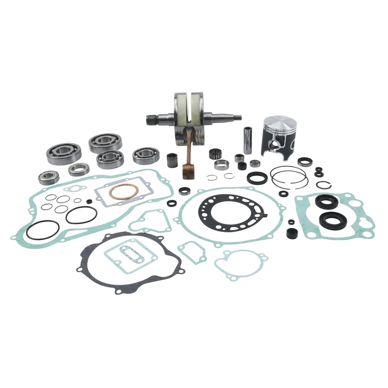 Vertex WR101-115 Kawasaki Complete Engine Rebuild KitDescriptionVertex Complete Engine Rebuild KitFits ModelsKX 250 (04)SpecsEngine Type: 2-CycleIncludes: Crankshaft, Piston Kit, Complete Engine Gasket Kit, Oil Seal Kit, Main Bearing and Seal Kit, Water Pu